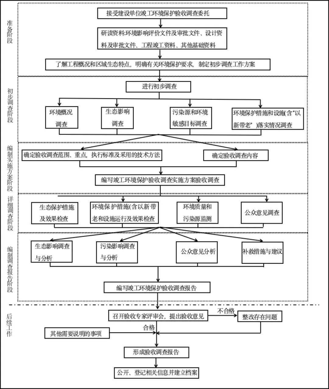 建設項目竣工后,建設單位應當如實查驗、監測、記載建設項目環境保護設施的建設和調試情況,編制驗收監測(調查)報告。以排放污染物為主的建設項目,參照《建設項目竣工環境保護驗收技術指南 污染影響類》編制驗收監測報告;主要對生態造成影響的建設項目(含海洋工程類項目),按照《建設項目竣工環境保護驗收技術規范 生態影響類》編制驗收調查報告;火力發電、石油煉制、水利水電、核與輻射、港口碼頭、海上石油天然氣開采、城市軌道交通等已發布行業驗收技術規范的建設項目,按照該行業驗收技術規范編制驗收監測(調查)報告。